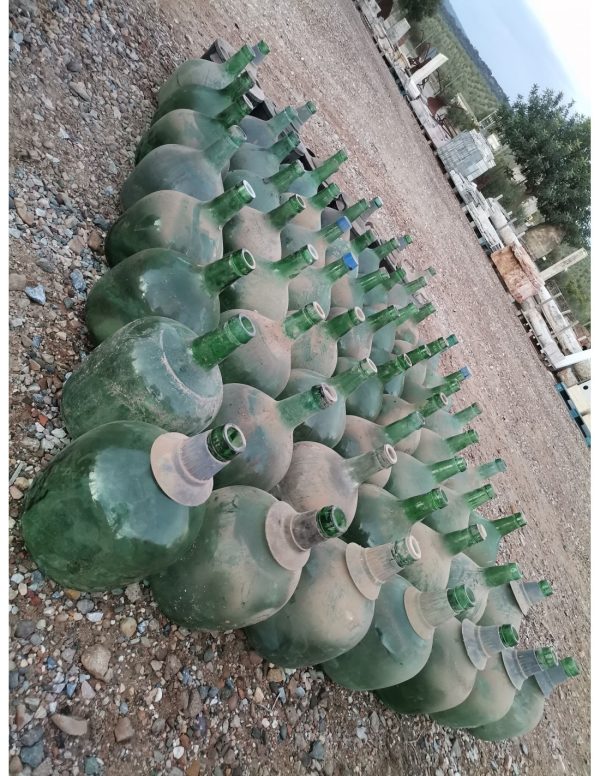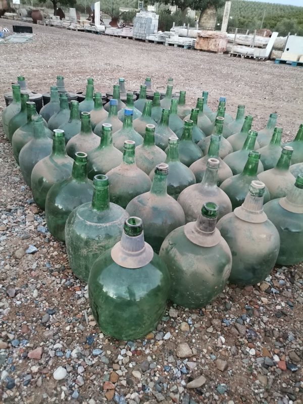 damajuanas de cristal procedentes de antiguas bodegas de vino.