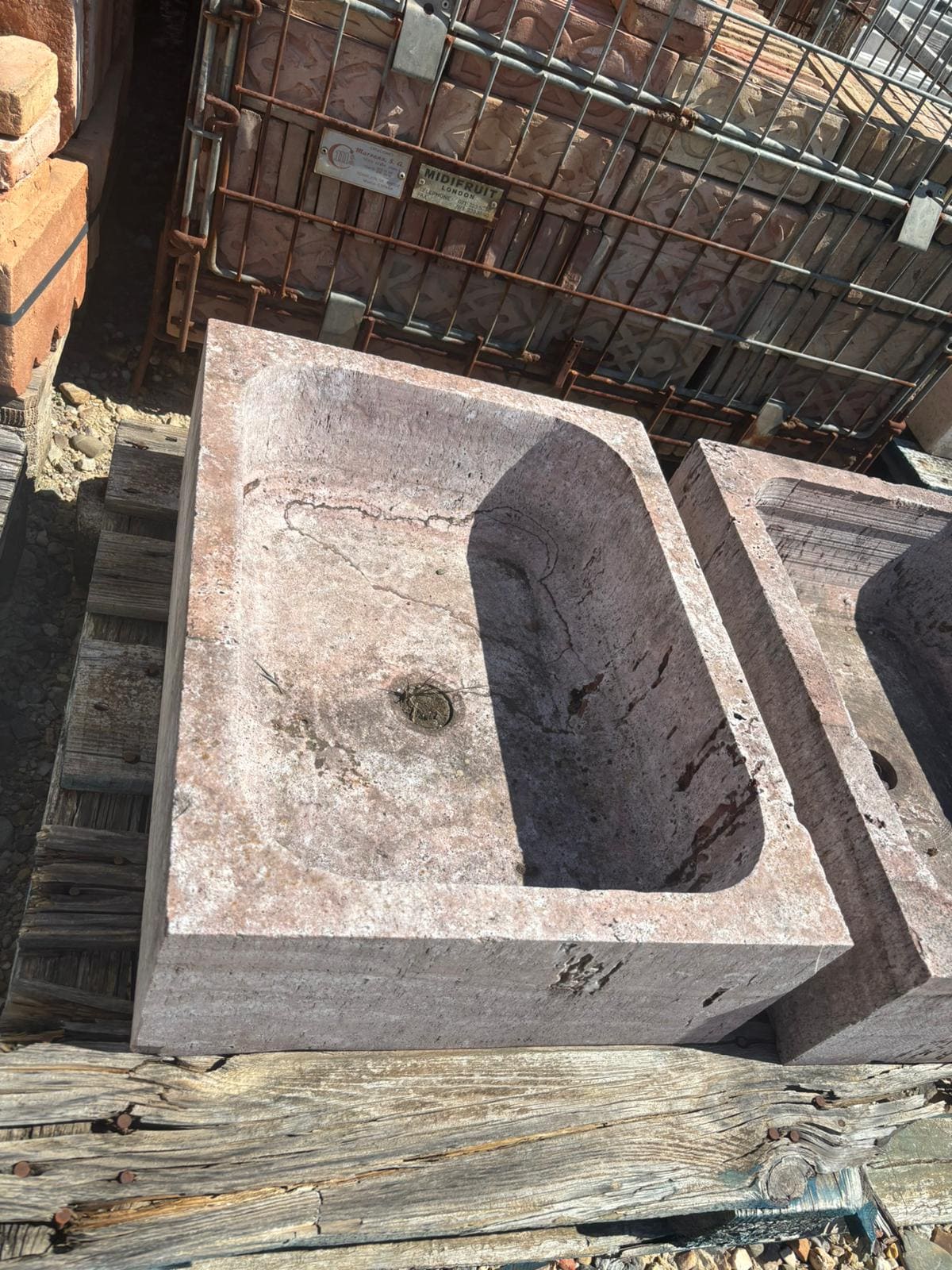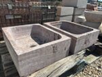 Fregadero en mármol color rosa.