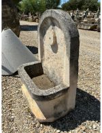fondo 58 cm. – fuente en piedra natural con frontal y pilón.