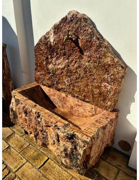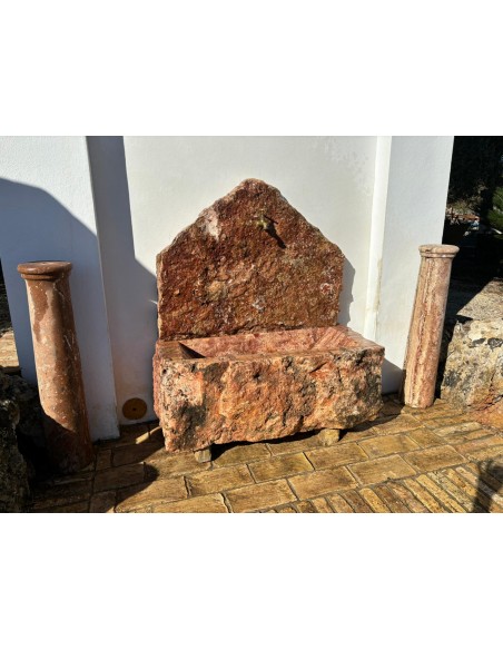 profundidad 60 cm. – fuente de pared en mármol rojo compuesta por frontal y pilón.