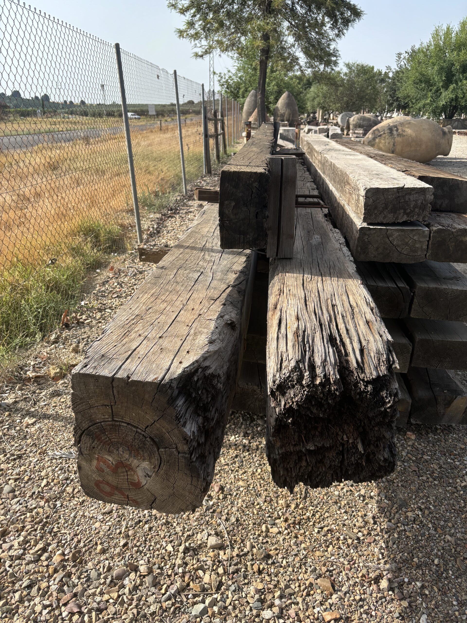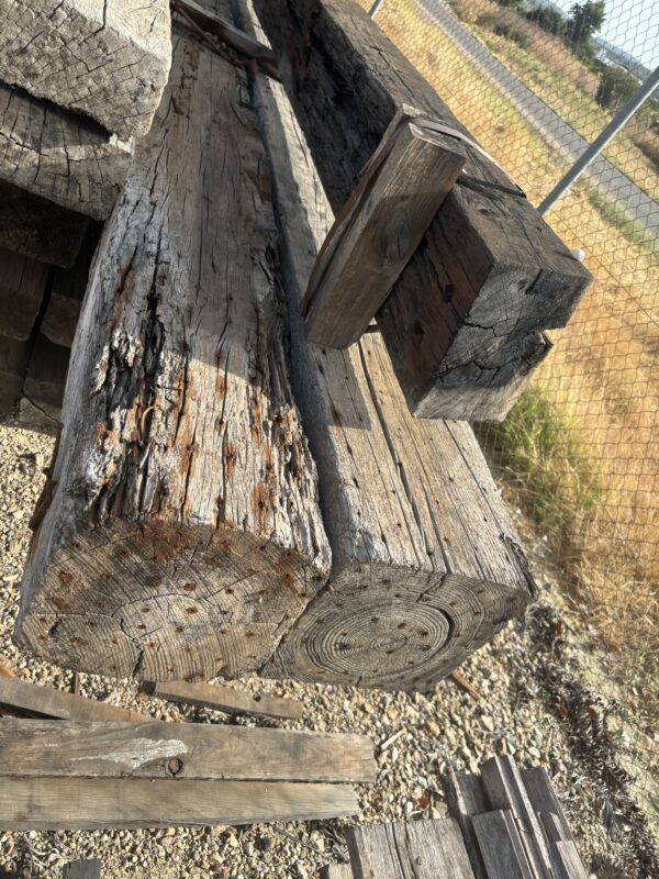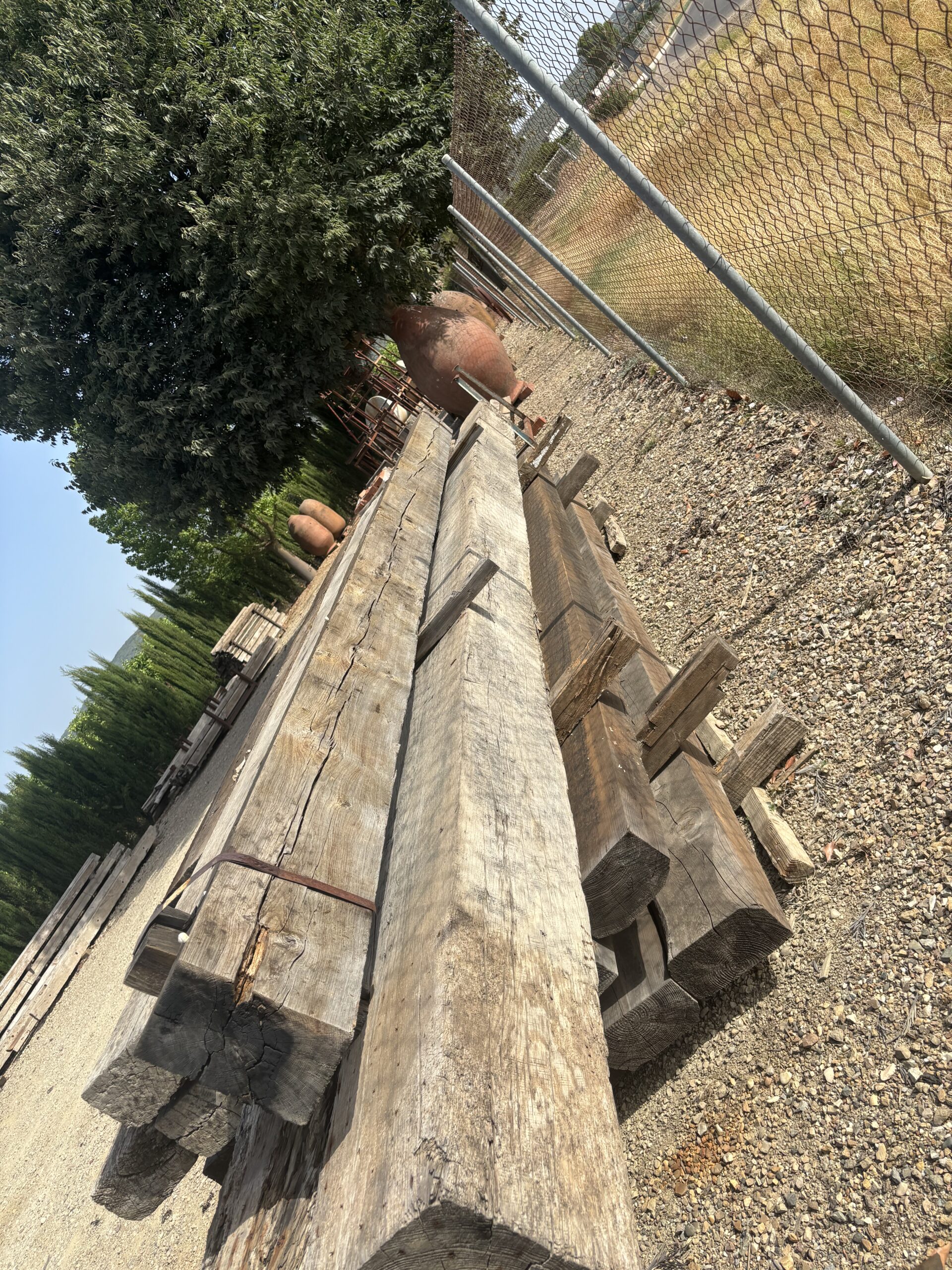 Vigas de madera procedentes  de antiguas construcciones , almazaras, bodegas … etc
